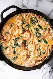 Tuscan shrimp combines tender and juicy shrimp with a creamy and rich Parmesan sauce with sun dried tomatoes and spinach. Impressive yet easy to make.
